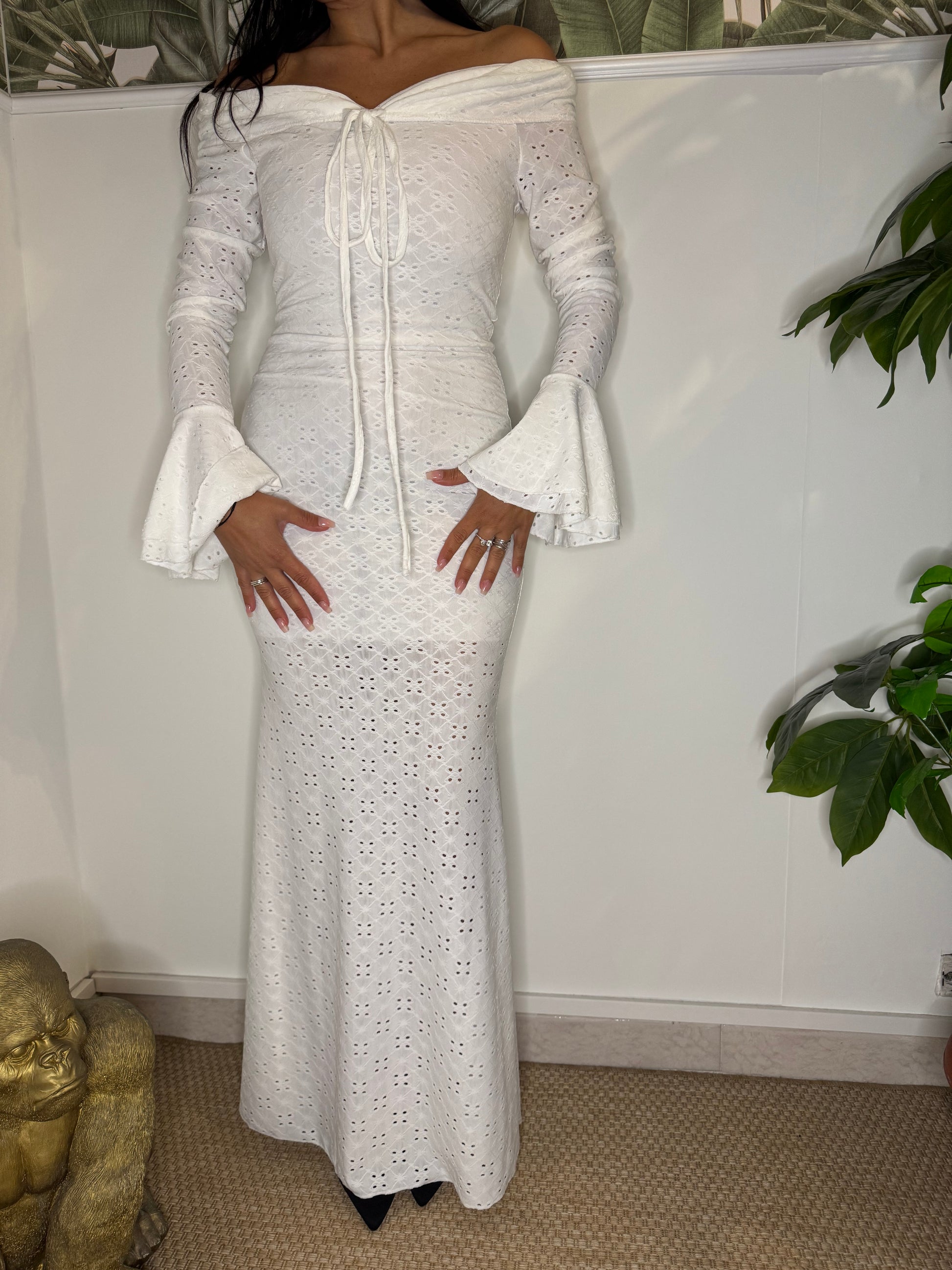 ABITO A SIRENA IN TESSUTO MORBIDISSIMO CON STAMPA IN PIZZO SANGALLO TAGLIA UNICA