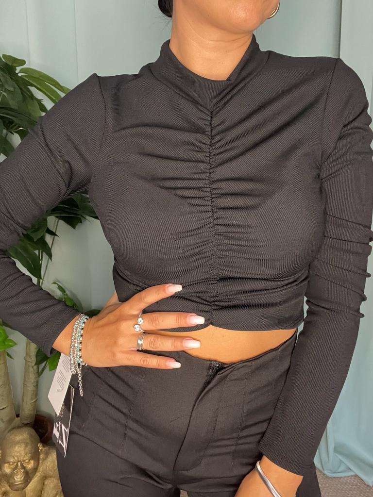 MAGLIA A COSTINE CROPPED CON DECORO CENTRALE